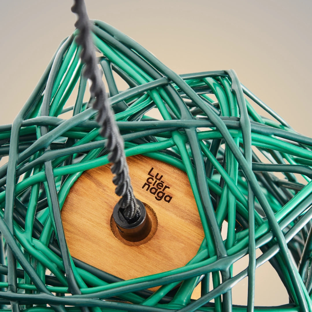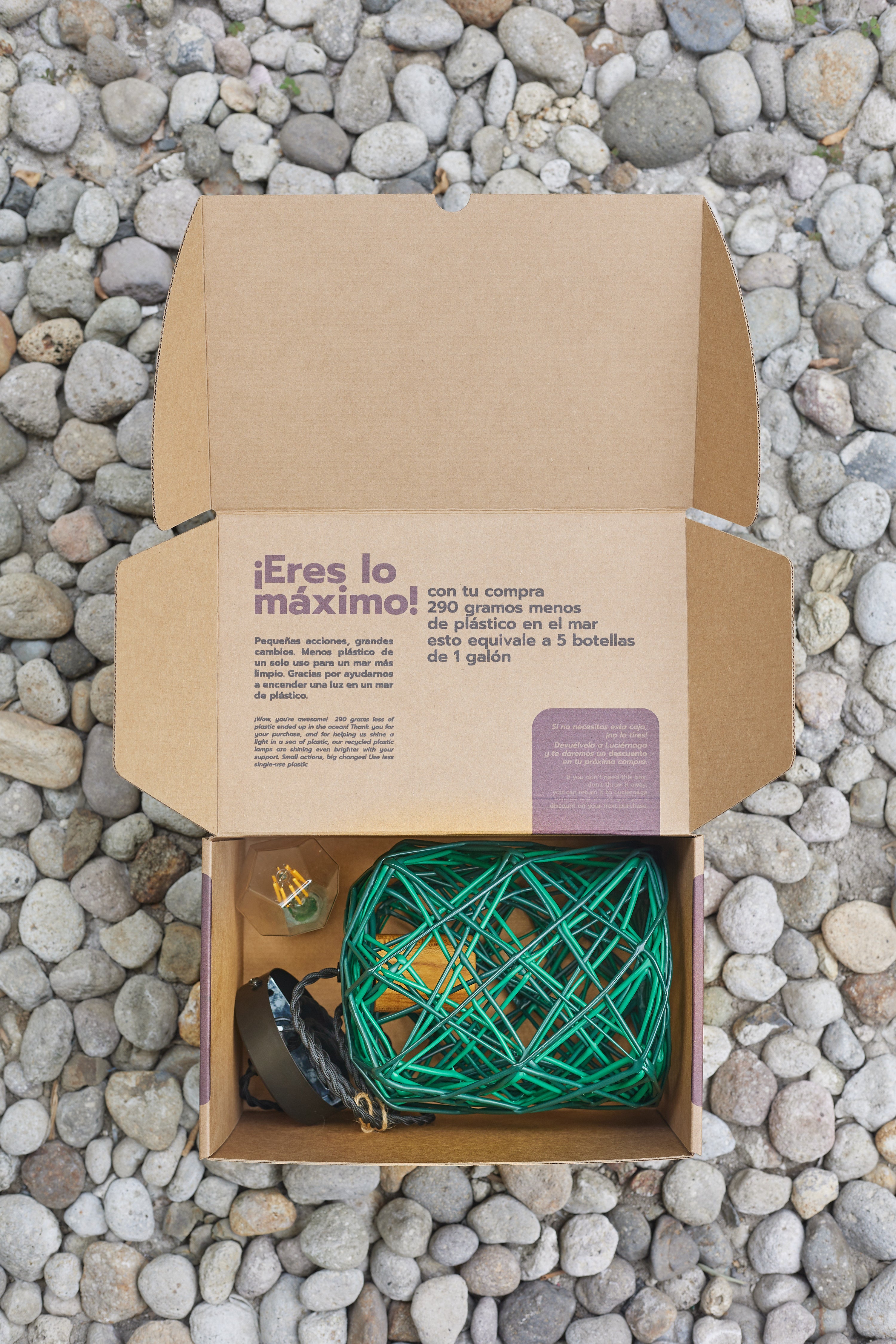 Las lámparas son hechas de 100% plástico reciclado, Polietileno de Alta Densidad (PEAD) o en inglés High-Density Polyethelyne (HDPE). El plástico que se utiliza es recaudado por diversas empresas que recogen y y reciclan el plástico de casas y comercios en todo Panamá. Este plástico es convertido en hojuelas y pasa a ser derretido y luego manipulado por nuestras manos para crear nuestras lámparas.
